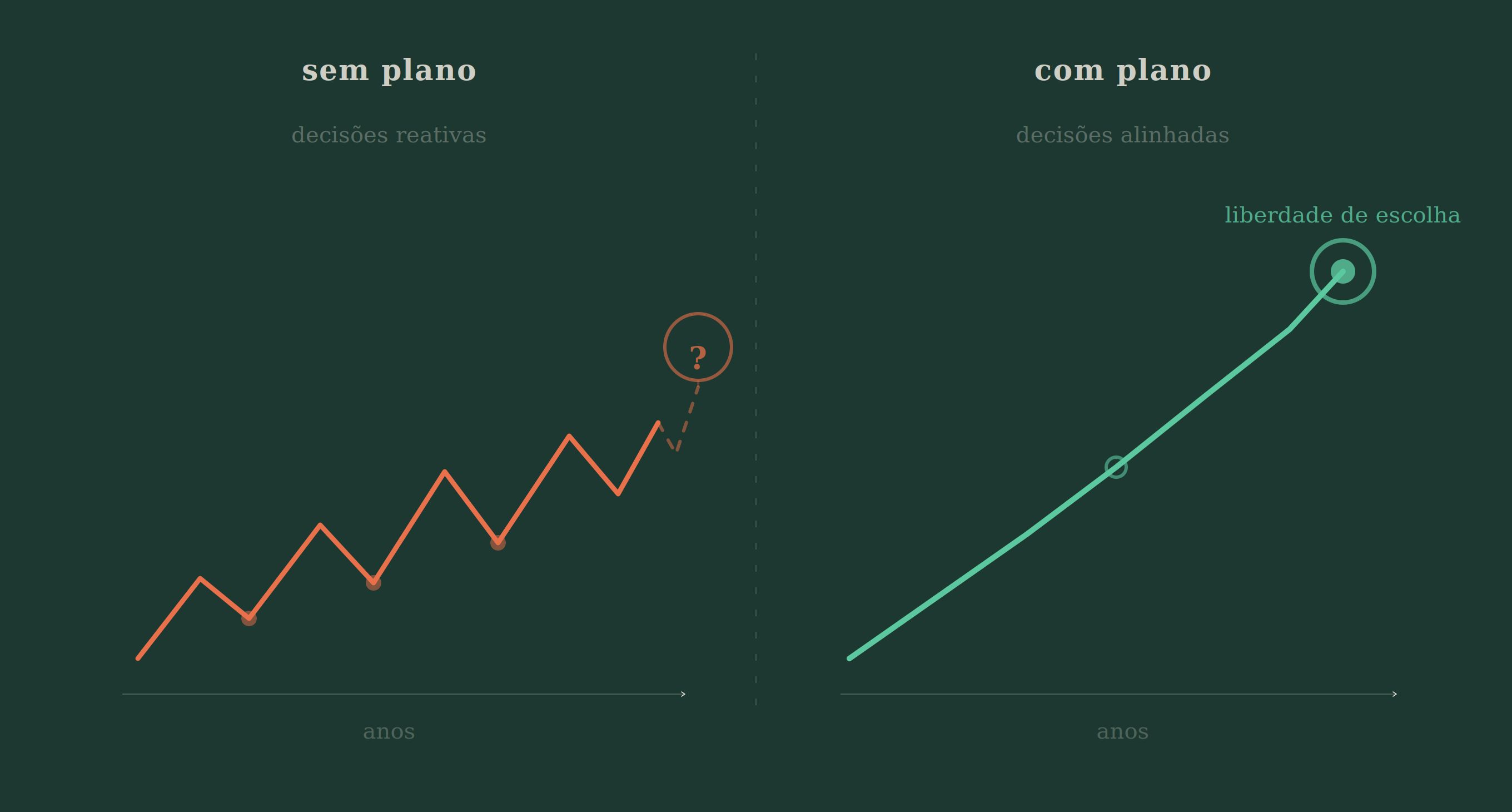 Anos de plantões feitos por hábito. Anos de aportes sem direção clara. Anos de decisões reativas: